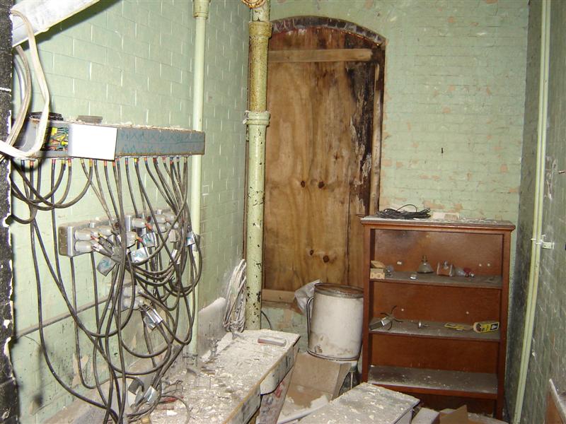 Still in the right hand door. There were two small rooms. You can see where that metal thing continues from one room to the other.