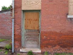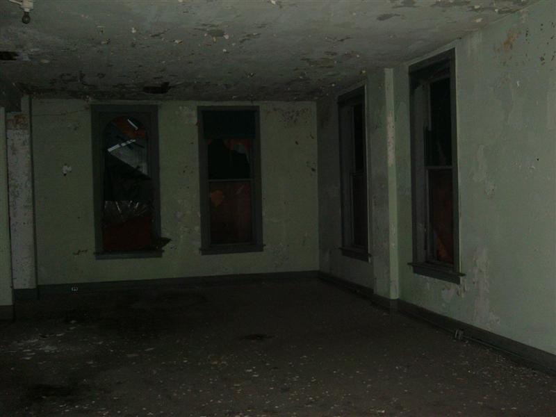 A close up of a window in the Bat Room. You can see why the building is boarded up. | Bat closet. |