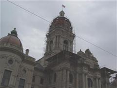 This picture, taken Easter '04, shows the restoration work done on the copper domes.
