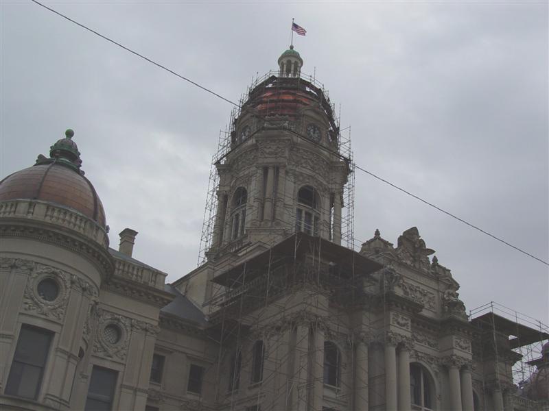 This building is probably the most defining figure in Evansville. Built circa 1895, it was designed by Henry Wolters who also designed the Old Jail. It actually is the third courthouse Vanderburgh County had. Not much is known about the first one, but the second one was building in 1857 and was razed in order to build this one.