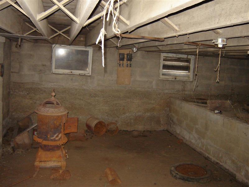 We made it in through the basement. What we found was, well that. It had some stuff, but not much. There was a ledge in the back with dirt and some dead plants. They could have been planted, but most likely just grew themselves. There was also a furnace looking thing.