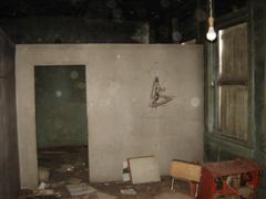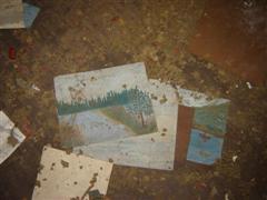 Other side of the same room. Through the door to the right is the first room. | Some artwork found in this room. Could it be from the school? |