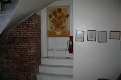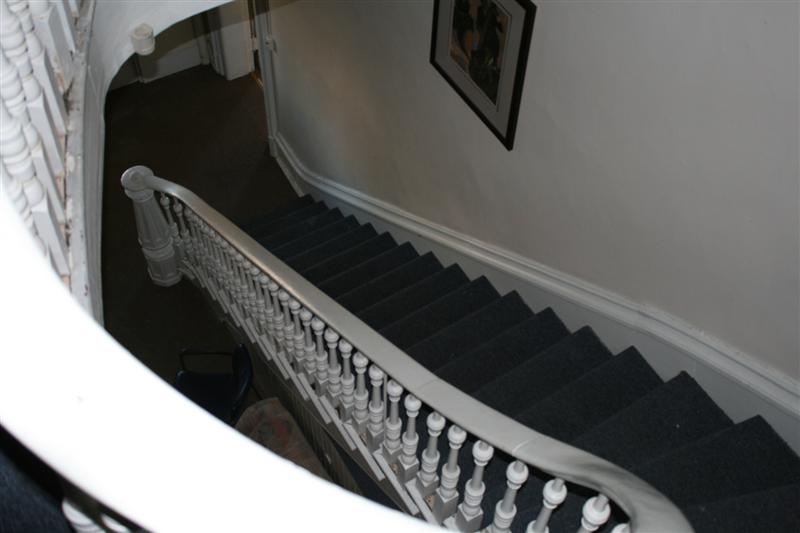 2. Top of the stairs. Water leaks caused the plaster to fall off revealing the brick. Actually looks nice