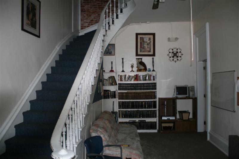 The main area just beyond the foyer. That bookshelf in the front now covers what used to be the entrance to the jail.