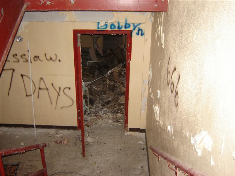 As you can see, the building was very unstable. The floors were pretty rotten, in fact, one room we didn't even attempt to enter. There were two upper levels. The layout was pretty normal. The back stairs went all the way to the third floor, but the front stairs only went as high as the main level and the basement. These aren't in order necessarily.