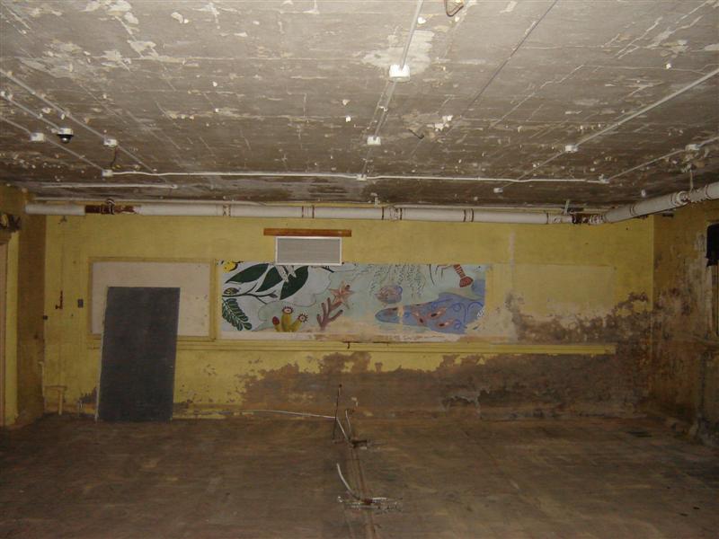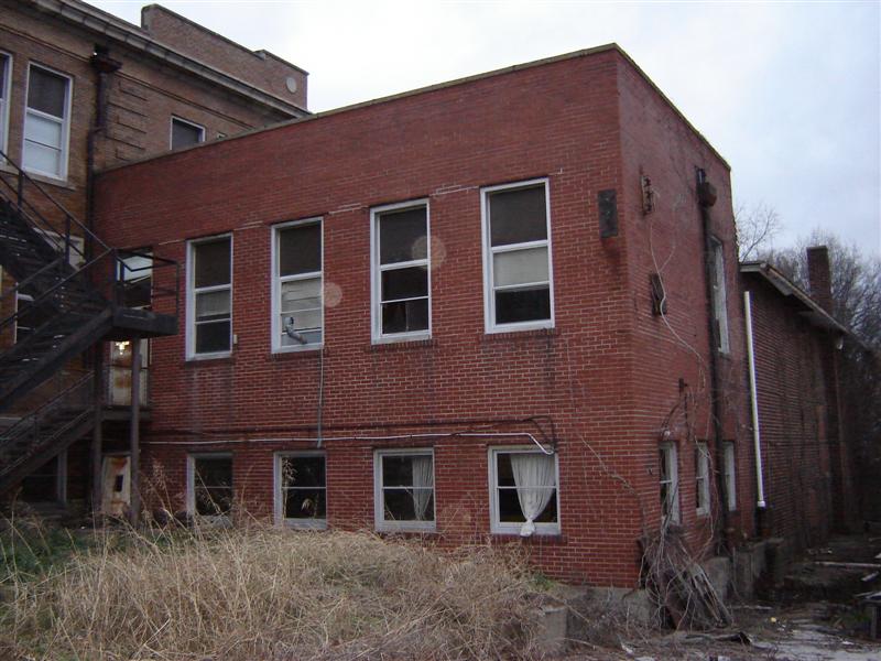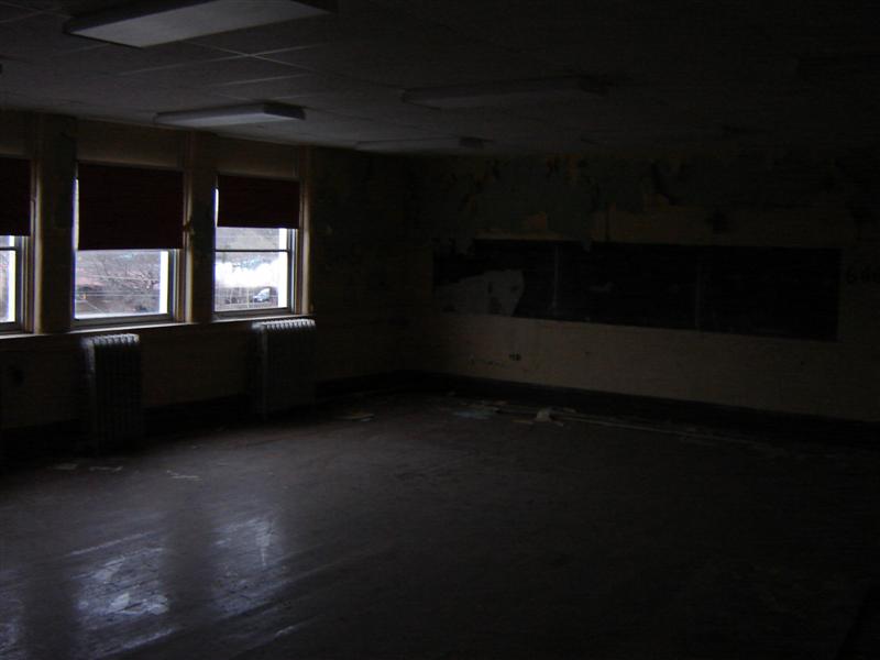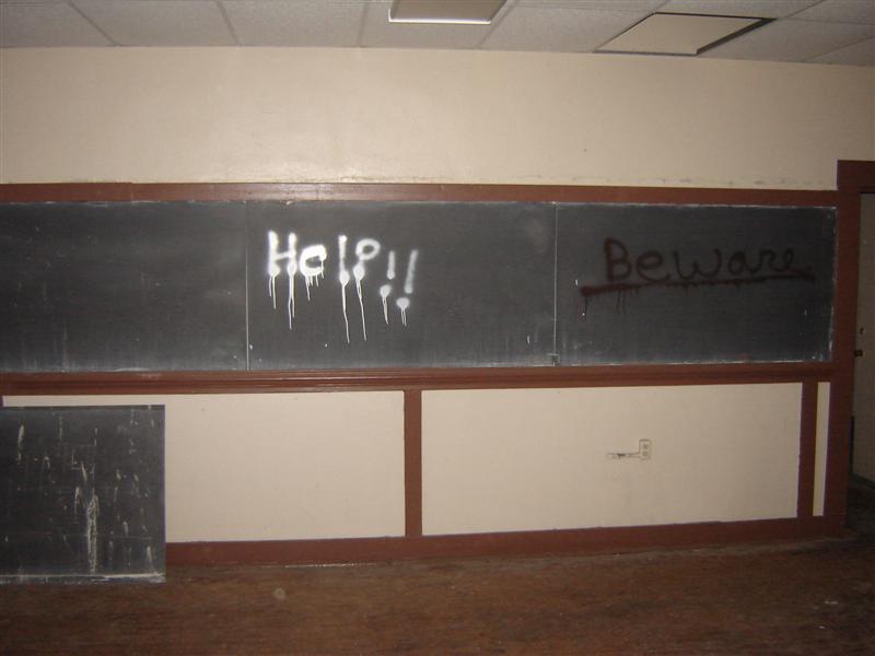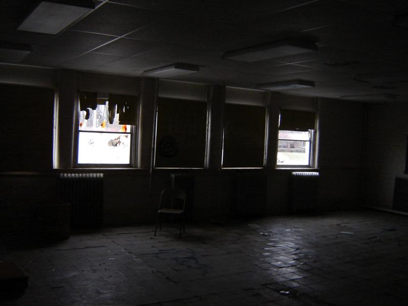 This building housed the teacher's lounge and and another building below. On the outside it had a "pantry" sign, and one of the rooms was definitely used to store food. This part of the building was added on later and only had two floors. The high floor was the teacher's lounge, and the lower level looked like some type of exercise room.