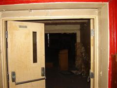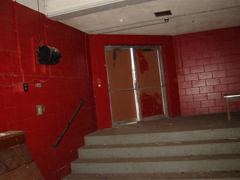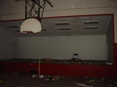 They gym was very, very cool. You could access the gym from a variety of ways. The basement level of the building went right into to it, you could get there a couple ways from the outside, and the teacher's lounge building had a hallway leading to it was well. This gym had several purposes. It was, of course, used for gym type stuff like basketball, but it was also used as an auditorium. It was very dark in there and we naturally did not have flashlights....so the pictures are very bad...sorry