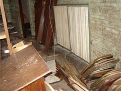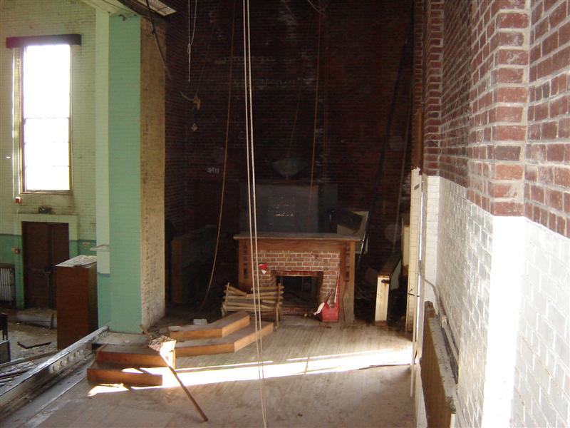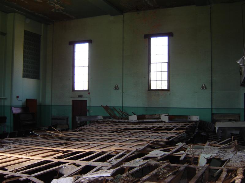 Tealman and I found a way in through the back door which led to the stage. The inside of the building shows what a beautiful building this once was. The deterioration of the ceiling and roof make it look pretty bad, but one can still see what a gorgeous building this once was. Here are some pics of the main area.