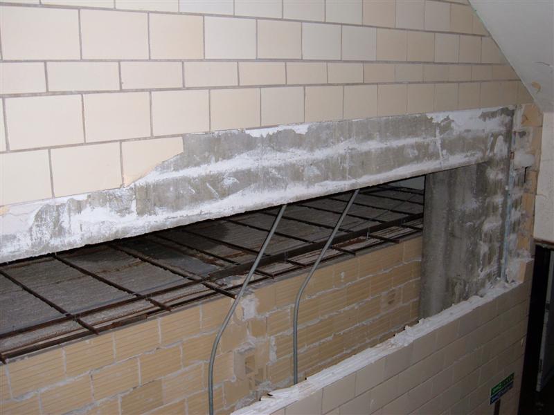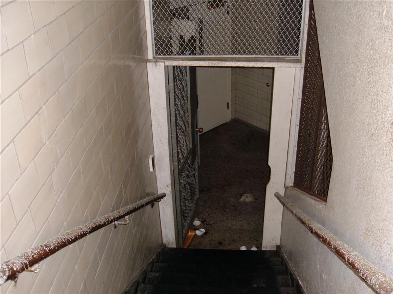 The top of the busted out stairs. All of this ruble from this hole was all over the stairs making it foolish to cross.