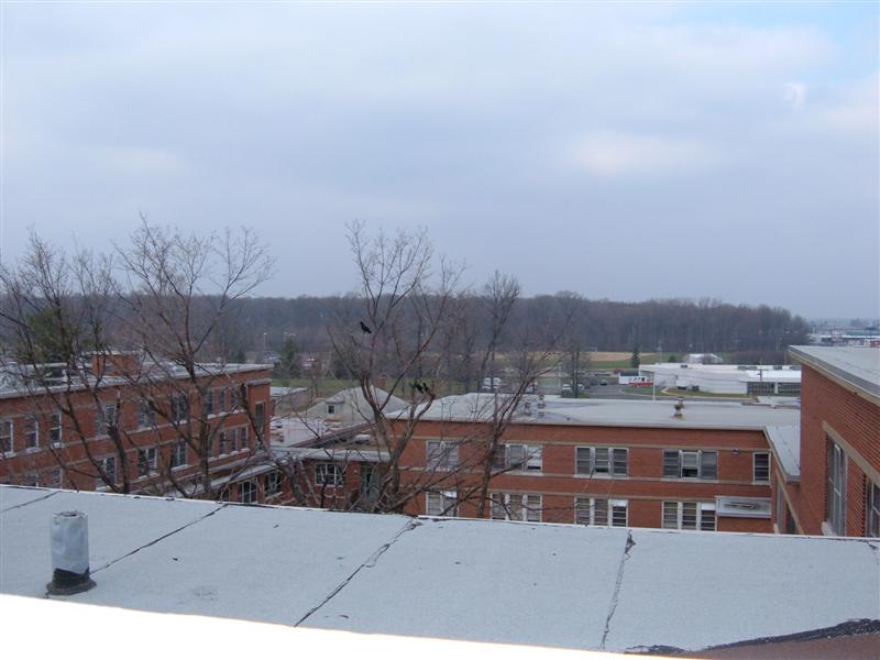 This is otherwise known as the main building. It is huge. It is five stories tall and covers over 320,000 square feet. It has a courtyard and just about everything else that would make this building something that could possibly be reused, but unfortunately that is not the case. I think the building was stripped of anything of value and demolition was in mind when they moved. It was very moldy inside due to flooding. In fact, out of the 5 or so trips I made, I think only one time did I not get sick. Anyway's, there are many pictures and I'll do my best to keep them in the appropriate order. You can see just how large this building is by these exterior shots.