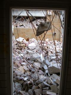 Farther out in the ruble there were remnants of another hallway. This was towards what used to be the front of the building. We were actually pretty surprised to find a few rooms left under the ruble.