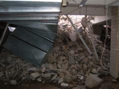 This was pretty dangerous. That's what's left of the roof. And in the distance is more kitchen.