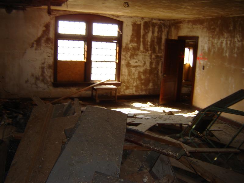 I had been waiting over a year to get into this building. Since I don't break doors, scale the sides of buildings, etc. I had to wait for another way in. Well, Tealman found a good way in through the north door. Now, this used to be a Ward and Administrator Building, but for many years it was also a haunted house. Most of what this building looks like now is consistent with it being a former haunted house; not part of a hospital.