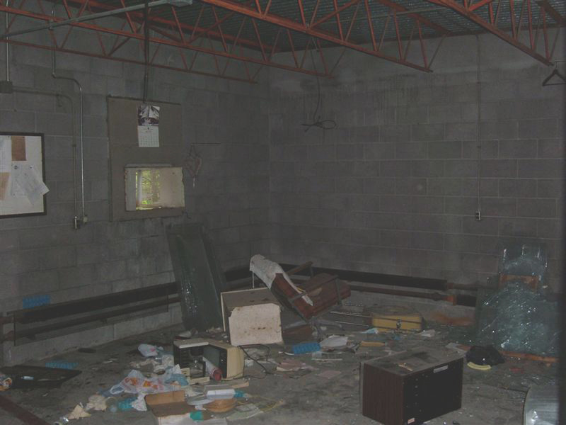 | Formerly building 20 as it sits away from all the other buildings. | Just inside the door. You can see all the debris around. | Just to the right of the main door is this small room with a register. |