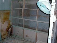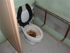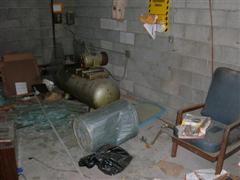 | It still has soap, a toothbrush, and some other hygienic products. | Nasty. | The adjacent room with more junk. |