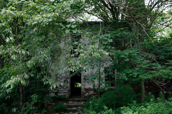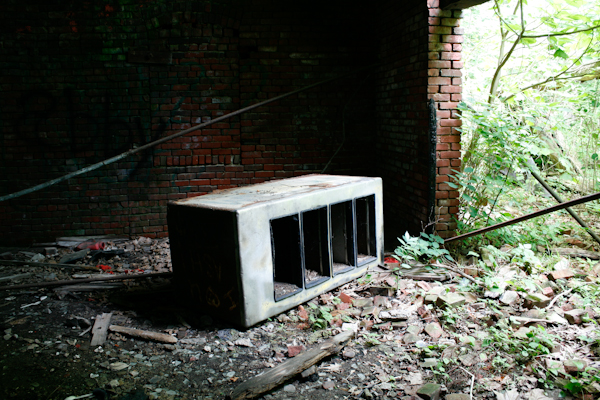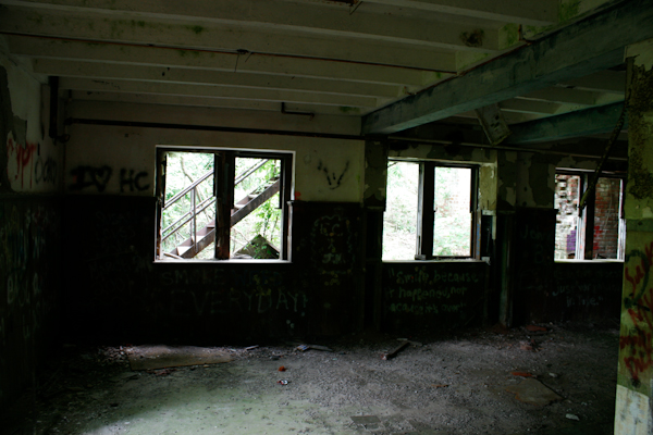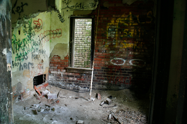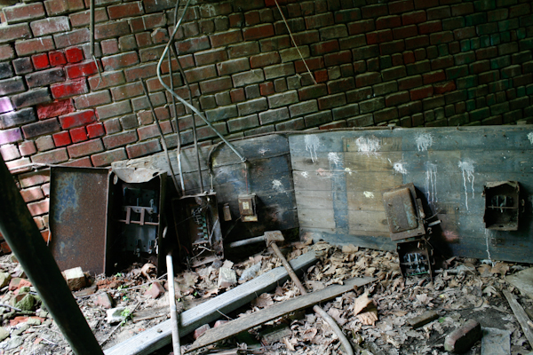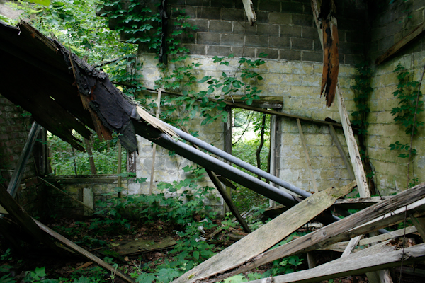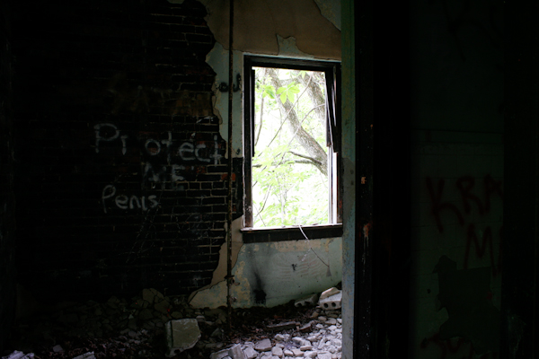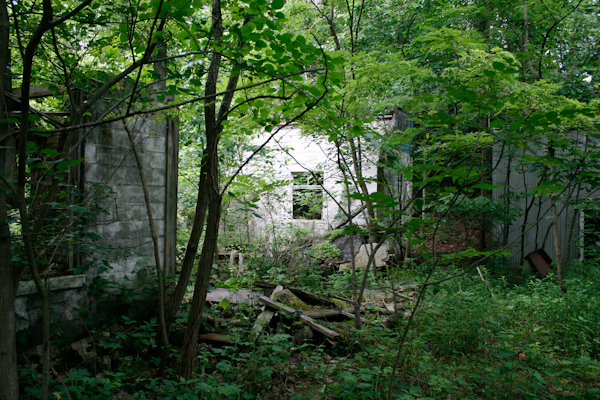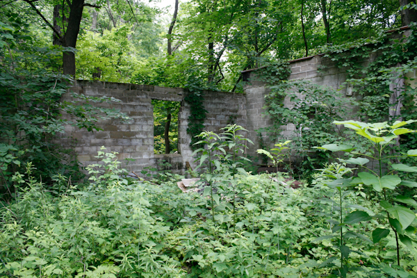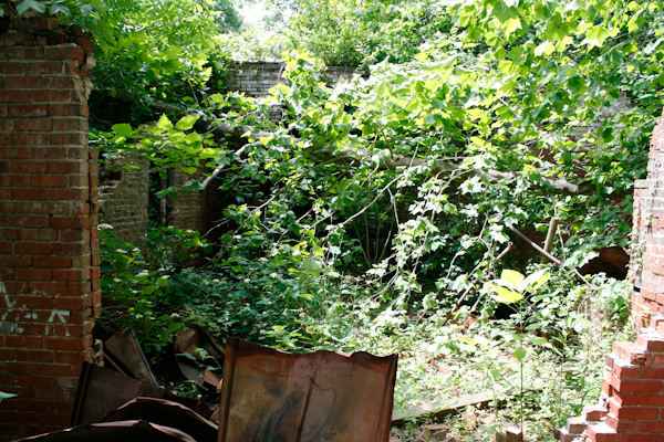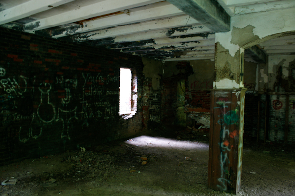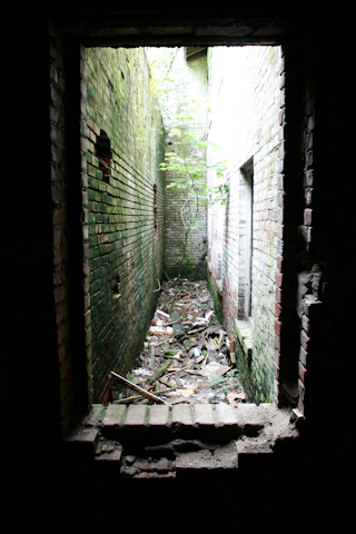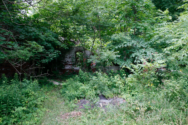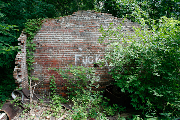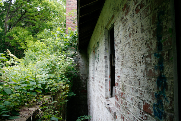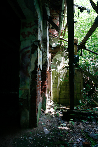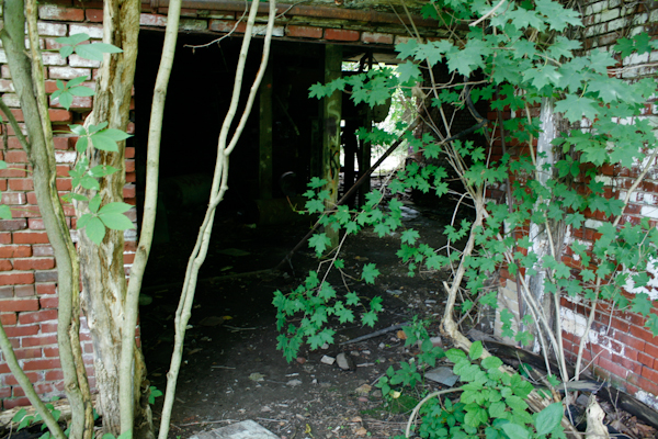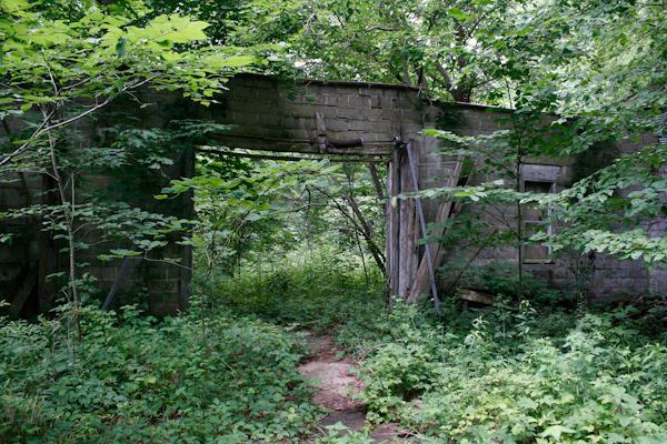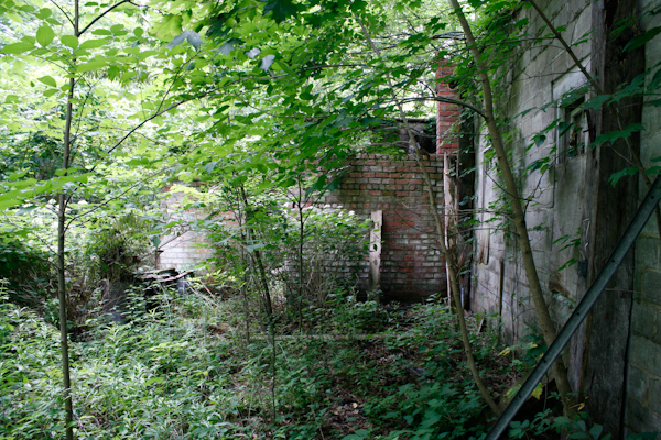 Again, I know nothing of this. It is cinder block, so was probably built around the time of Pleasant Valley, but that is just a guess. Definitely not part of the original building. However, there was a small brick building inside. It was quite unusual. Three of its walls were brick and looked to be fairly old, but the back wall was the same as the rest of the building.