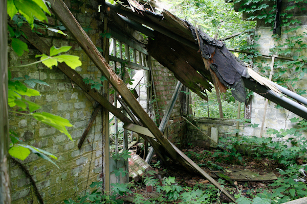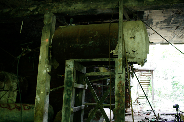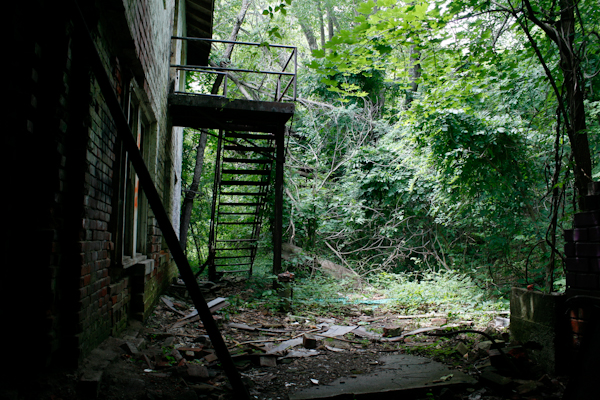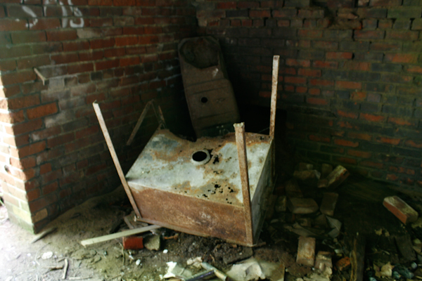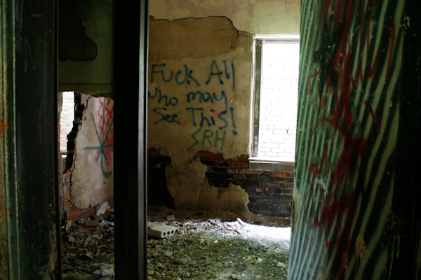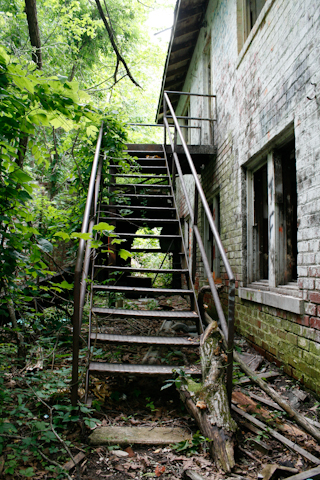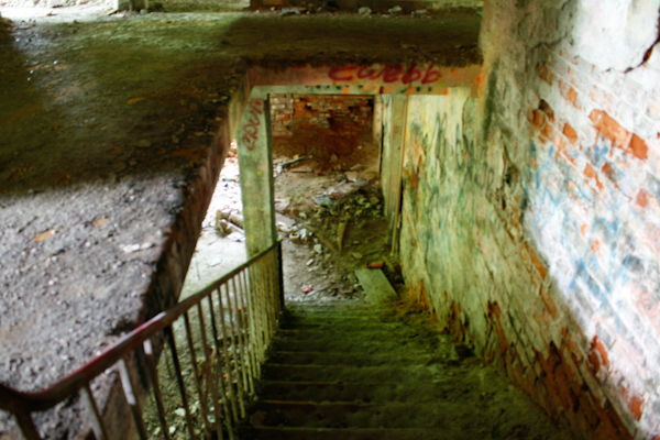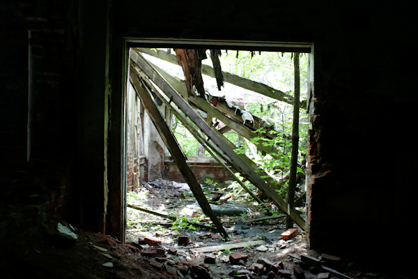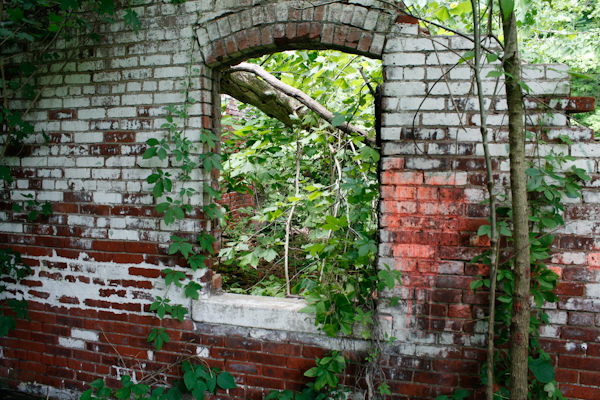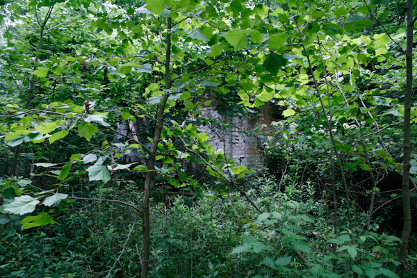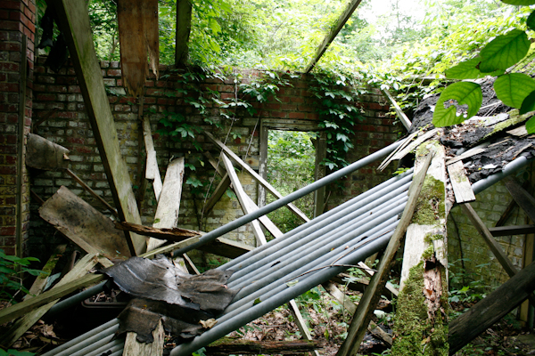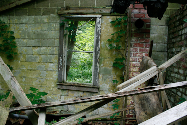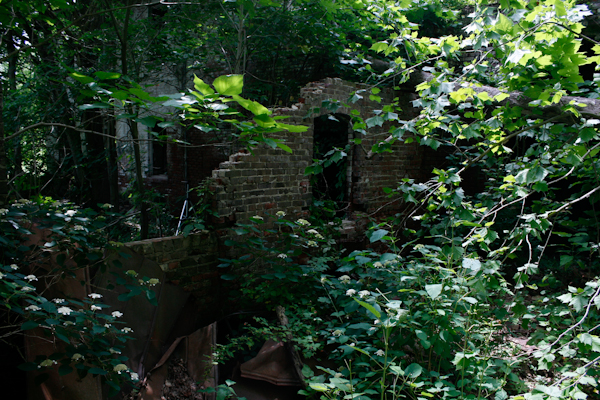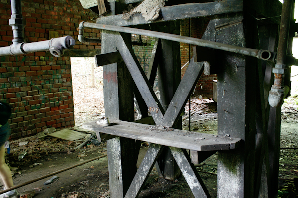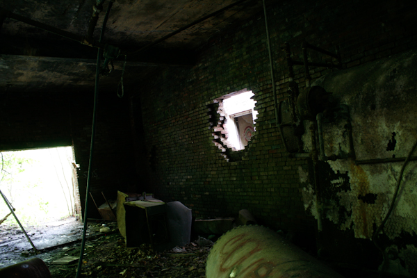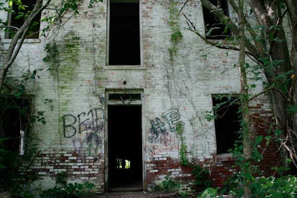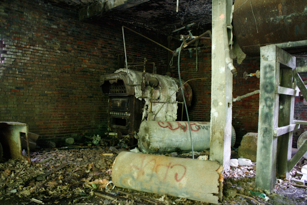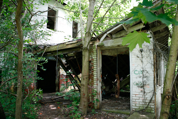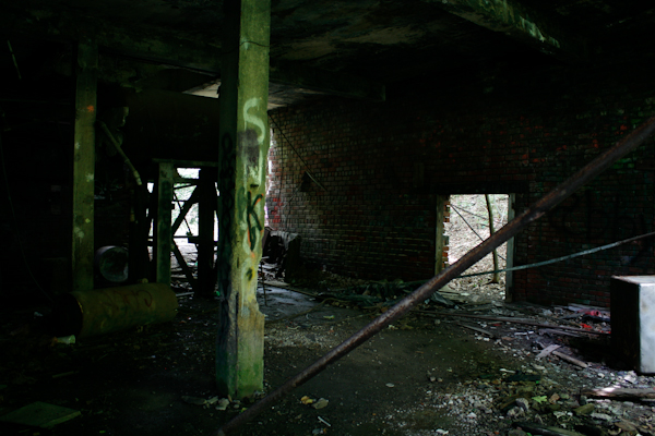 Again, I know nothing of this. It is cinder block, so was probably built around the time of Pleasant Valley, but that is just a guess. Definitely not part of the original building. However, there was a small brick building inside. It was quite unusual. Three of its walls were brick and looked to be fairly old, but the back wall was the same as the rest of the building.