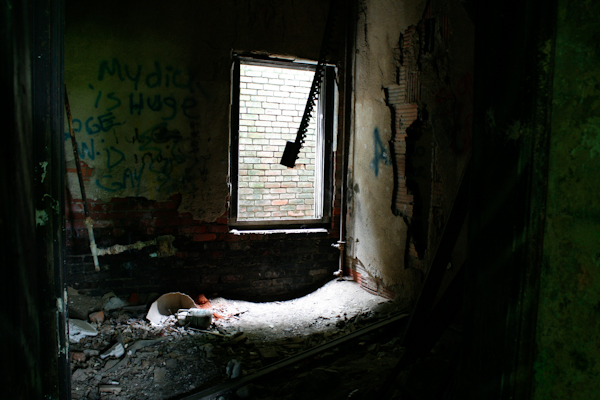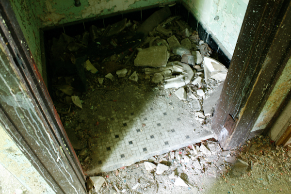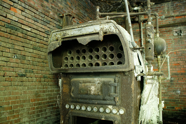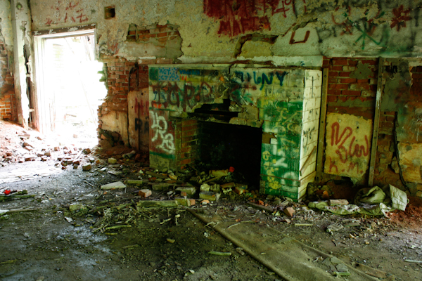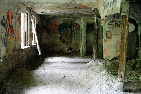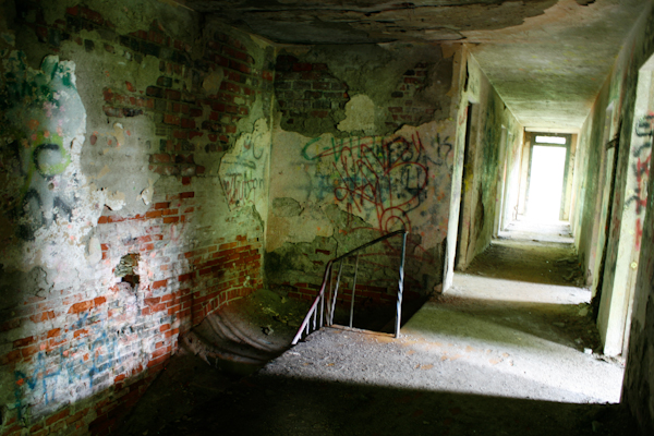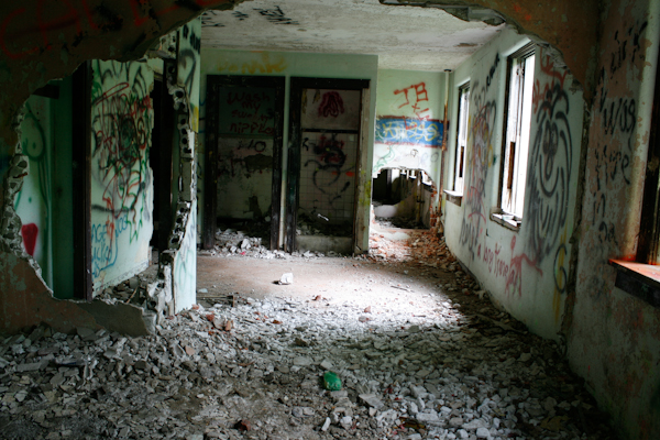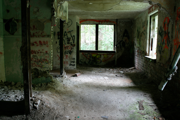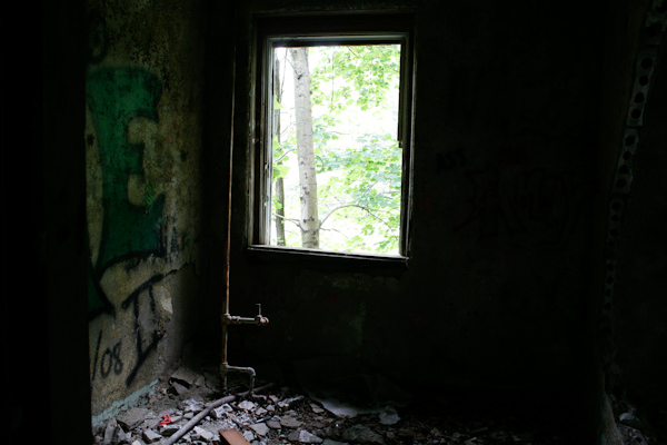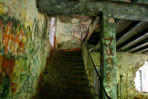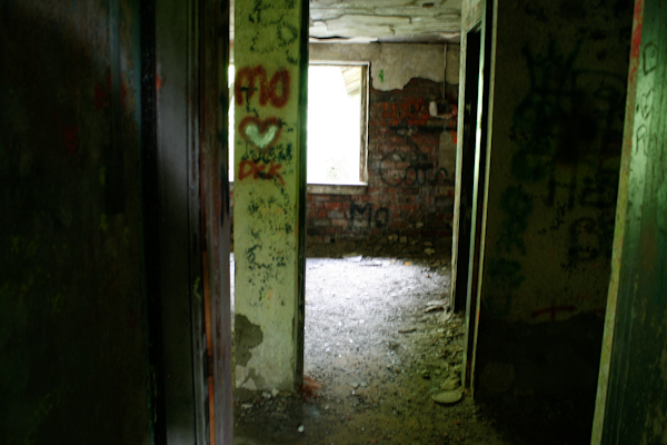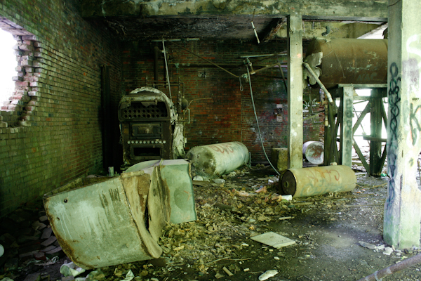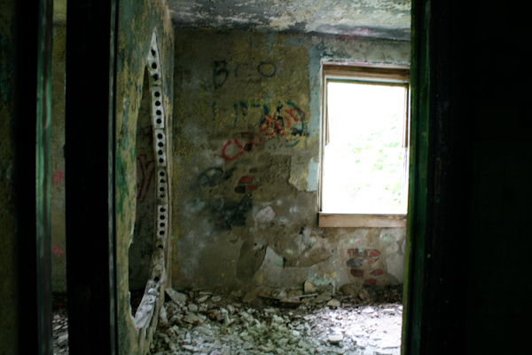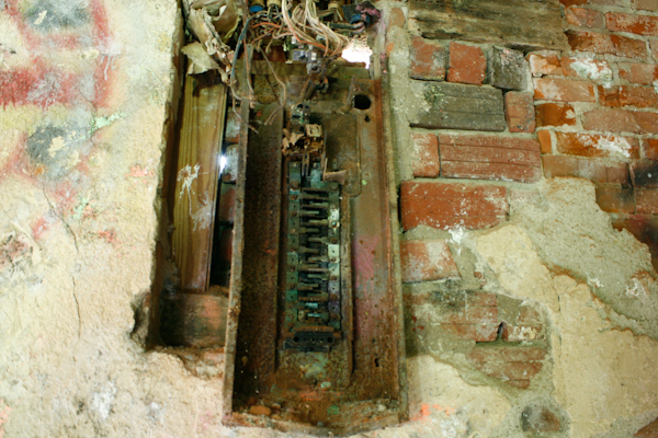 What was left of the building was pretty amazing. I am not sure when this particular part was built. I have read it was built when the original hotel was built dating it to c. 1890. I have a picture up top that shows it was around in 1918 so it is at least that old. I have also read that they made a brick addition in around 1913 so perhaps this is that addition. I am not entirely sure of the original use of this building. I have read that this was the spa where they gave mud baths. However, it seemed to be a separate building which means it could have housed the workers of the Hotel. I really do not know. It was supposedly used as part of a retirement home used in the 1960's. I would believe that. This building had fluorescent light fixtures and modern looking wiring. Whatever it was used for, I am quite certain it was used then.