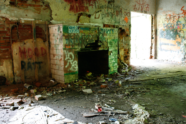 Ahh yes, Mudlavia Hotel. This gem was built c. 1890. The history of this place is quite interesting, but not as much as many people would lead you to think. It was discovered by a civil war vet, who was digging a drainage ditch. He was digging this ditch to control water that was coming out of a spring. While digging it, he began to drink the water. He suffered from rheumatism and found that this water had a healing effect on it. (They still tap into these springs in the area and bottle the water.) The same man whose name appears on the neighboring town, Kramer got the great idea to build a hotel on the site to exploit the spring. Apparently they were very muddy springs, thus giving in the name "Mudlavia." Its original official title was, "The Indiana Springs Company." People from around the world would come. The place flourished until 1920 when a fire burned down the main hotel building. It is my understanding that it still operated even though the main hotel was gone. In fact several buildings caught fire. They built a retirement home, "Please Valley Lodge" in 1960. It burned in 1968. I think the remaining building was used as well during that time as you can see some evidence of modern wiring.