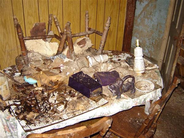 This place is nothing special; just an old abandoned home with everything left inside. We found this one on accident back in 2007, but knew it would be worthwhile. I have no idea about the history of the place. The decor was very outdated, very 70's looking and a calendar suggests its last inhabitants were then until 1989. Other than that, the owner's liked to booze. The place is pretty much falling apart and trashed, but it is pretty incredible because there is so much stuff left inside.