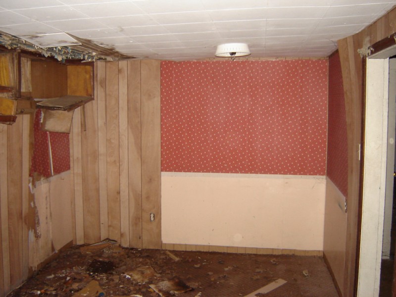 Nice 70's paneling. This was the area the connected the house to the garage, and the cistern...ewwwww