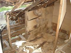 Looking up at the rotted floor.