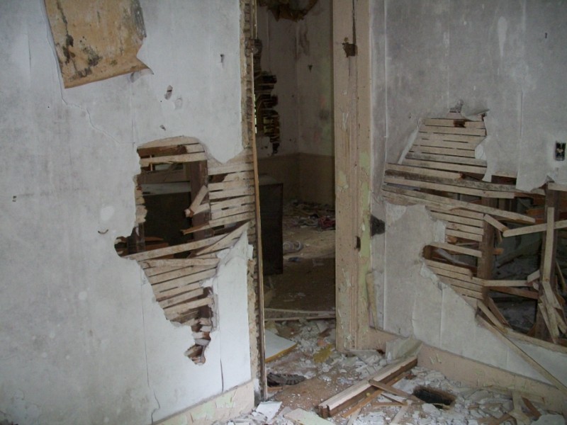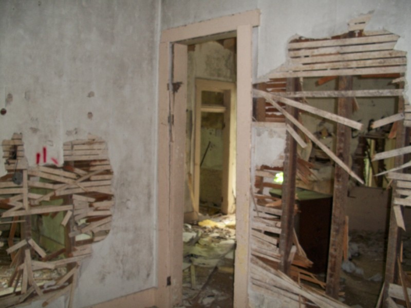 The basic setup of the house was this. There was a large room that connected most of other rooms. I would guess this was the living room. To the north of that was another large room which connected to another small room. Those both could have been bedrooms. There were also three small room off of the large room. Those were mostly likely bedrooms and perhaps a den or study. Also, off of this room was the kitchen. Both the kitchen and living room were accessible from outside. They both had doors that were in the front of the house. Also, this house had dropped ceiling tiles and other things to indicate it was most recently not used as a house. It would appear that some type of religious services were held there. There were several bibles and other religious class type things to support that. Also, there were hanging fluorescent lights not commonly used in homes. However, who knows.