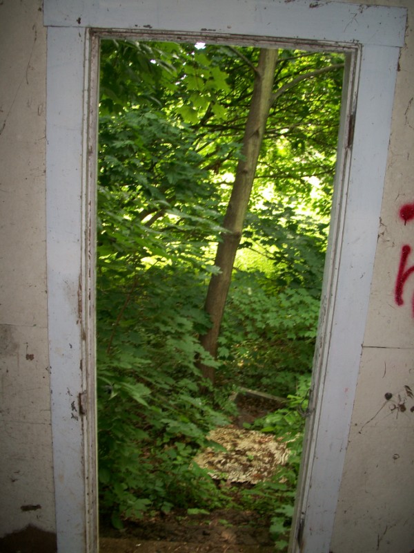 The side. | More of the side through the small clearing in the woods. | Ah a door. this door led to the family room. Another door on the left led directly to the kitchen. |