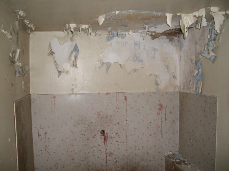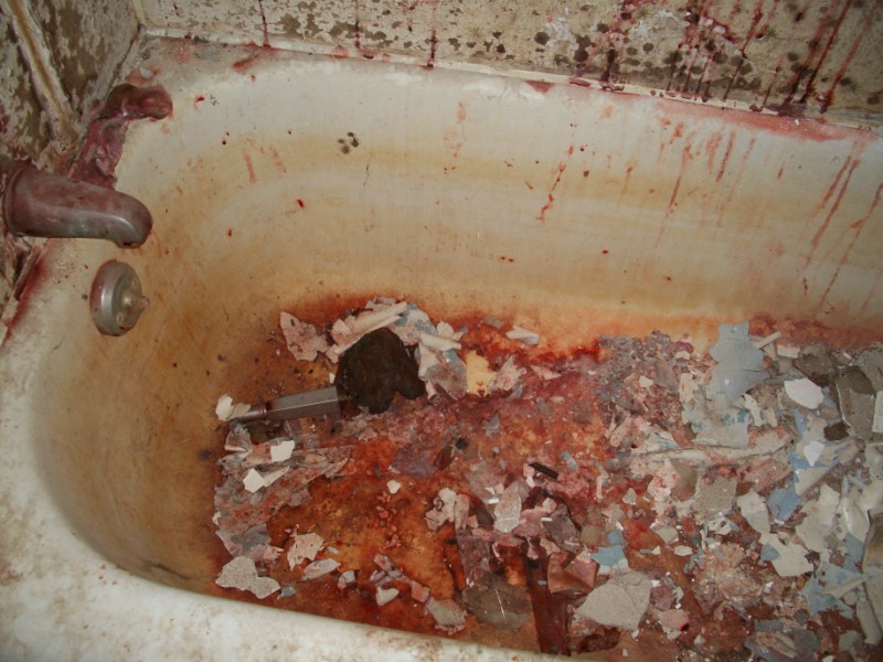 The Bathroom. This the room where it all supposedly happened. You be the judge of how real this looks to you. I will tell you that the stains looked more brownish like dry book when I took the pictures and looked more red with the flash, but who knows. My guess is was a prank to scare someone.