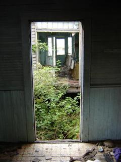 A relic. | Not sure what this was, but there were coats still hanging. | The other side room. Very dangerous. |