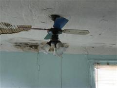 This was about as far in this room as I could walk. It was mostly ruble, but there was some cool junk around. | The ceiling fan still hangs. |